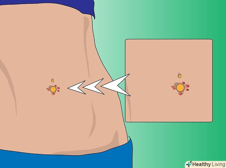 Слідкуйте за появою інфекції. якщо з місця проколу з'являється білувата рідина, то це означає, що пірсинг заживає нормально. Якщо рідина жовта, зелена, і погано пахне, то в пірсингу з'явилася інфекція. В цьому випадку, йдіть до лікаря. [1]