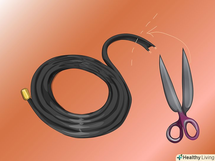 Відріжте фідерну частину.як було сказано вище, антена виглядає як"T". Всі попередні розрахунки були для верхньої горизонтальної частини (верхньої частини букви T) антени. Вертикальна частина (нижня частина T) повинна бути з'єднана з горизонтальною частиною, щоб полегшити підключення антени до роз'єму антени приймача. Хоча горизонтальна і вертикальна частини функціонують в якості антени, вертикальна частина називається фідерної лінією.- Відріжте шматок симетричного кабелю, довжиною рівний або кратний величині, обчисленої раніше. Цього буде достатньо, щоб створити горизонтальну частину антени при її створенні.