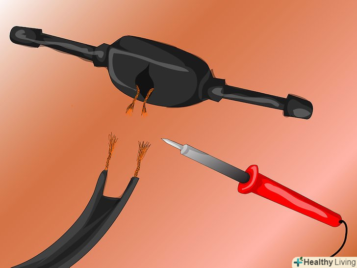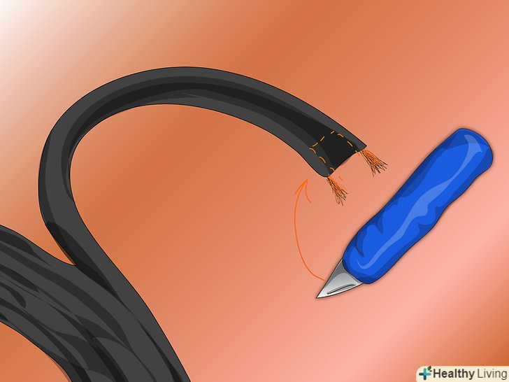 Залудіть дроти кабелю за допомогоюПрипою.перекрутіть жили проводів, щоб вони були згруповані. Якщо пайка-це не варіант, перейдіть до наступного кроку, після того як зніміть ізоляцію з проводів.- Нанесіть невелику кількість флюсу для пайки (не використовуйте флюс для пайки водопровідних труб, так як він містить кислоту). Невеликого 20-ти або 50-ти ватного паяльника або праски буде достатньо для нагріву проводу.