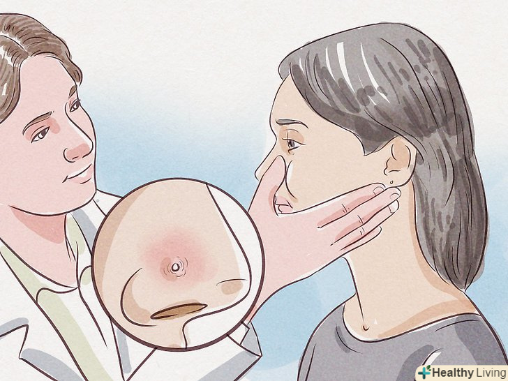 Зверніться до лікаря, якщо у вас спостерігаються незвичайні симптоми. якщо ви підозрюєте, що прокол носа інфікований, краще негайно відвідати лікаря. У деяких випадках просто необхідно негайно вдатися до медичної допомоги, щоб уникнути подальших ускладнень. Відразу ж зверніться до лікаря або в пункт невідкладної медичної допомоги при наступних симптомах: [13]- Сильний біль в області пірсингу;