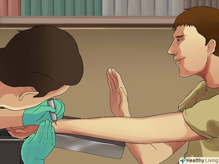 Ні в якому разі не вживайте алкоголь, щоб притупити біль. у більшості авторитетних тату-салонів відмовляться працювати з п'яною людиною, так як така людина непосидючий, галасливий і може замовити татуювання, про яку в подальшому буде шкодувати. [8]- Крім того, алкоголь розріджує кров, тобто ваша татуювання буде довше кровоточити. [9]
