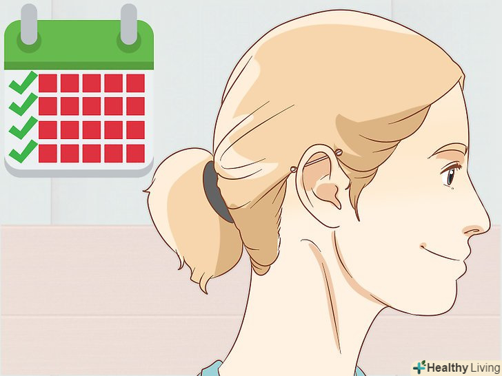 Запишіться на процедуру. у деяких студіях потрібно записуватися, але якщо запис не потрібно, найкраще попросити записати вас, тому що в хороших студіях буває багато відвідувачів. Розкажіть майстру про свої алергії і про те, яку прикрасу ви хочете. Запишіть всі рекомендації майстра щодо дня процедури.- Перш ніж зробити пірсинг, обговоріть це зі своїм лікарем, якщо у вас є які-небудь проблеми зі здоров'ям або якщо ви регулярно приймаєте будь-які препарати.