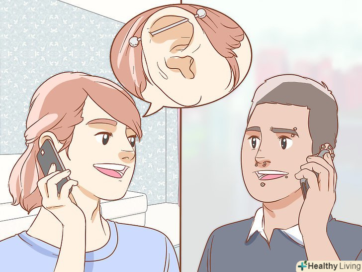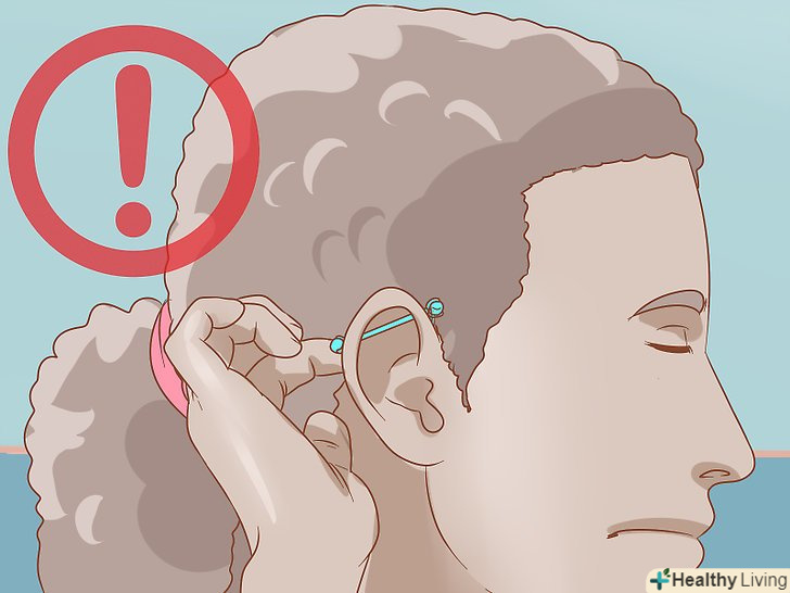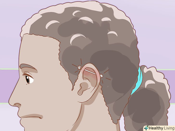 Уникайте речовин, які можуть викликати роздратування в рані. деякі речовини провокують роздратування, сухість, пошкодження і забивають пори. Чи не промивайте місце проколів перекисом, ароматизованим милом, спиртом, не обробляйте антибактеріальної маззю і кремами або гелями на основі вазеліну. Також не використовуйте готові розчини для догляду за вухами, до складу яких входять ці речовини. [10]- Слідкуйте за тим, щоб предмети, що стикаються з вашим пірсингом, були чистими, включаючи волосся, пальці, одяг і навіть телефон.