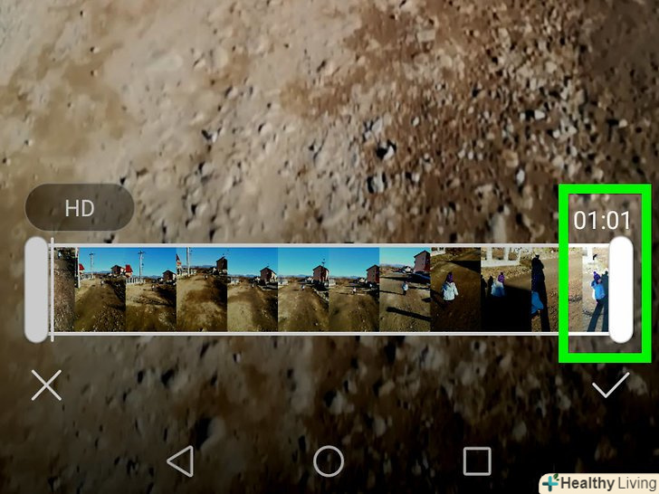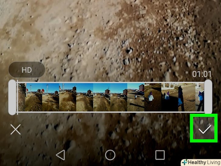 ТоркнітьсяЗберегти.ця кнопка знаходиться у верхньому правому куті. Обрізане відео буде збережено на пристрої.