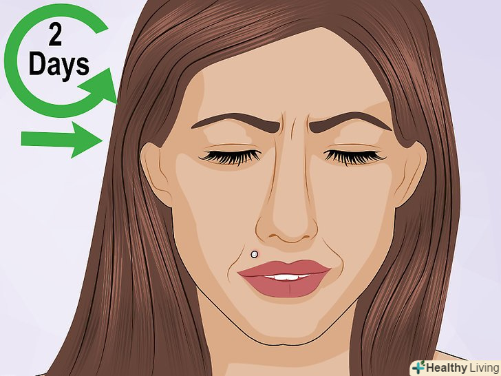 Придивіться до можливого набряку. швидше за все, перші 48 годин навколо проколу буде невеликий набряк — це природна реакція організму на те, що він сприймає як рану. Після цього набряк повинен почати проходити. Якщо набряк зберігається або збільшується, а також супроводжується почервонінням і болем, це свідчить про інфекцію. [2]- Набряк здатний негативно вплинути на функціонування проколотої частини тіла: наприклад, при набряку мови їм може бути важко ворушити. Біль і утруднює руху набряк в місці проколу можуть свідчити про інфекцію.