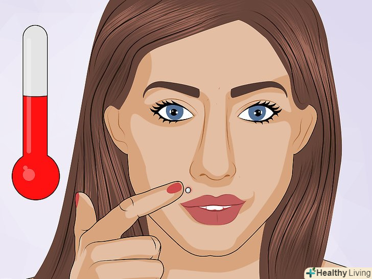 Перевірте, чи не гаряча шкіра навколо місця проколу. почервоніння, набряк і біль можуть супроводжуватися жаром. При запаленні і інфекції часто здається, що в місці проколу шкіра як би випускає тепло. Шкіра може бути навіть гарячою на дотик. [4] перш ніж доторкнутися до місця проколу, обов'язково помийте руки.
