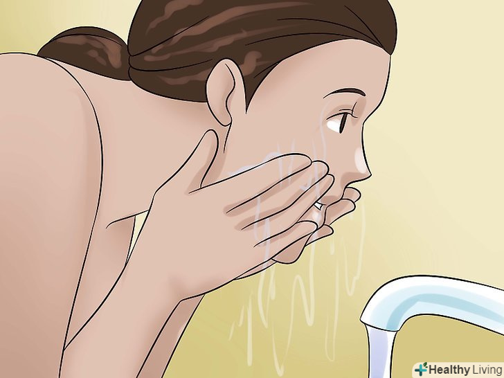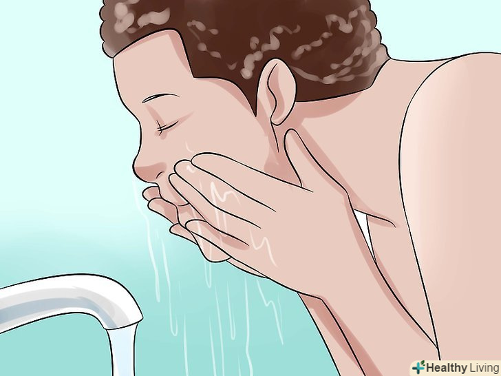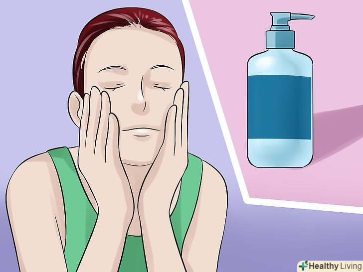 Вмийтеся, використовуючи м'який засіб для очищення. видаліть макіяж за допомогою улюбленого миючого засобу і вмийтеся. Шкіра на обличчі дуже чутлива, тому не варто вмиватися занадто гарячою або холодною водою, найкраще підійде тепла.- Переконайтеся, що ви повністю видалили макіяж перед тим, як продовжувати процедуру по догляду за обличчям.