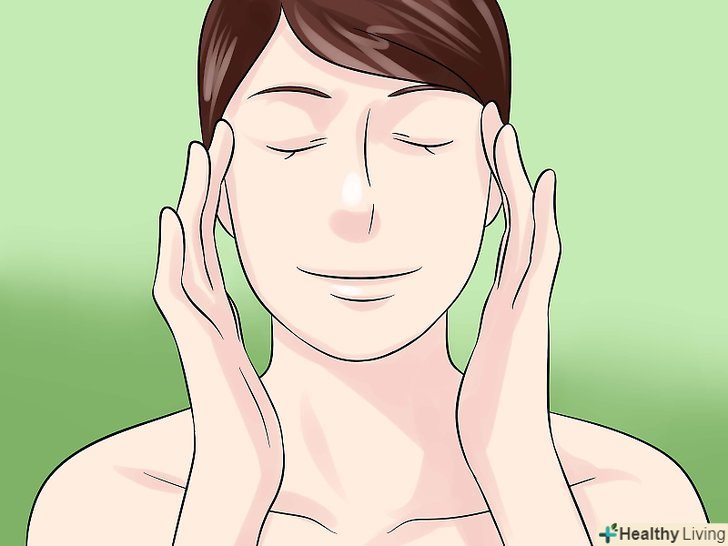 Зробіть собі масаж обличчя. Масаж збільшує циркуляцію, роблячи шкіру більш здоровою і сяючою. Тепер, коли ваша шкіра чиста, помасажуйте обличчя, перш ніж переходити до наступної фази. За допомогою середнього і вказівного пальця зробите легкі, кругові рухи.- Помасажуйте лоб, починаючи з середини і просуваючись до скронь.