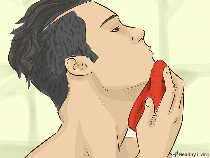 Змийте гель або піну для гоління холодною водою. тепла вода відкриває пори, через що бритва легше захоплює волоски. Холодна вода закриває пори після гоління, через що бактеріям складніше потрапити всередину пір. Ви почали процедуру гоління з гарячого душу, вірно? Так закінчите її холодним душем!- Можна прикласти до обличчя вологу холодну тканину на п'ять хвилин, і цим закінчити процедуру гоління. Насправді, чим довше ви будете охолоджувати шкіру, тим краще.