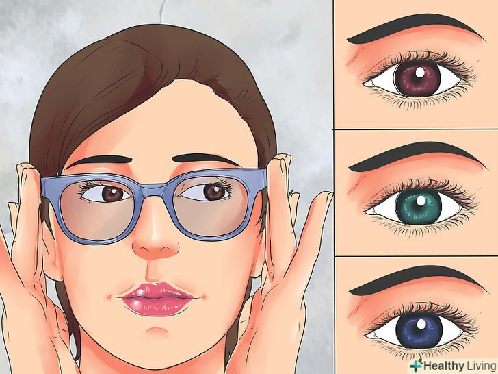 Зробіть вибір: окуляри або контактні лінзи. Якщо у вас не ідеальний зір, велика ймовірність, що вам доведеться носити окуляри або контактні лінзи. Після того як Ви вирішите відмовитися від косметики, Витратьте деякий час на те, щоб походити в окулярах і в лінзах і вирішити, що Вам підходить більше.- Якщо ви вирішите ходити в окулярах, виберіть пару, яка обрамить ваше обличчя і підкреслить риси обличчя (особливо очі).