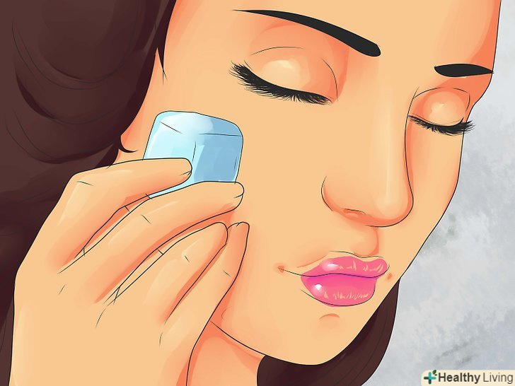 Позбавтеся від почервоніння і набряклості шкіри після того, як прокинетеся. Після того як ви вмиєтеся, погляньте на свою шкіру. Якщо після сну деякі ділянки на вашому обличчі почервоніли або трохи набрякли, протріть їх кубиком льоду. Холод допоможе звузити кров'яні судини, що допоможе позбутися від почервоніння і набряків.