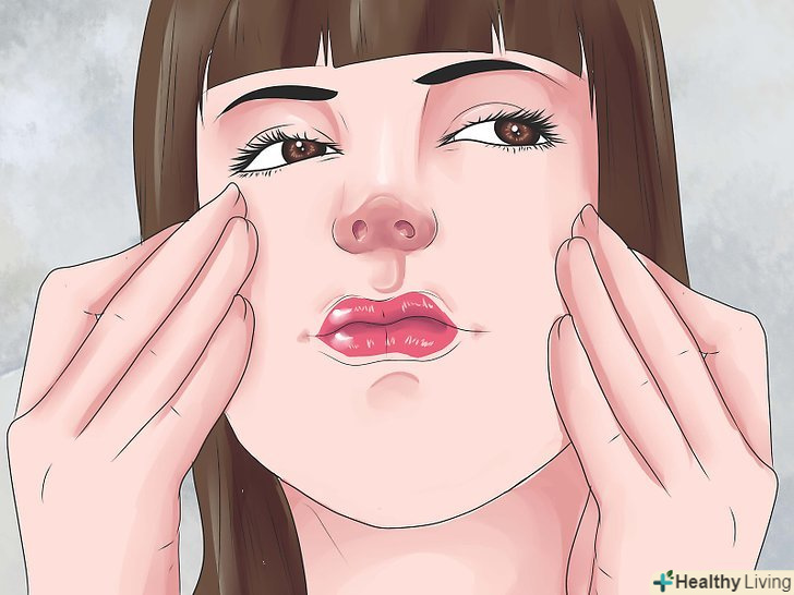 Надайте кольору вашим щоках. Рум'янець на щоках надаєте особі здоровий, сяючий вигляд. Однак вам не обов'язково користуватися рум'янами, щоб домогтися потрібного відтінку шкіри. Ви можете просто злегка вщипнути себе або поплескати по щоках, щоб шкіра стало більш рожевою.- Ваші щоки також знайдуть натуральний рожевий колір після того, як ви проведете час на сонці або після виконання вправ.