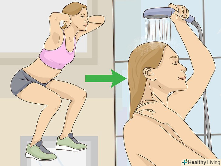 Приймайте душ після занять спортом. коли ви займаєтеся спортом, спина потіє, що може привести до появи прищів. Після інтенсивного тренування відразу ж йдіть в душ і помийте спину за допомогою гелю, щоб змити весь піт і запобігти утворенню прищів. [9]