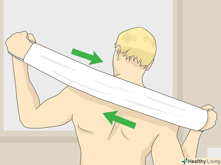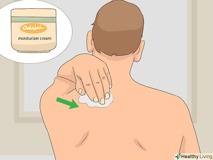 Зволожуйте спину після виходу з душу. спочатку витріть рушником. Потім розітріть лосьйон для тіла по верхній і нижній частині спини. Зволоження спини відразу після душу запобіжить сухість і лущення шкіри. [3]