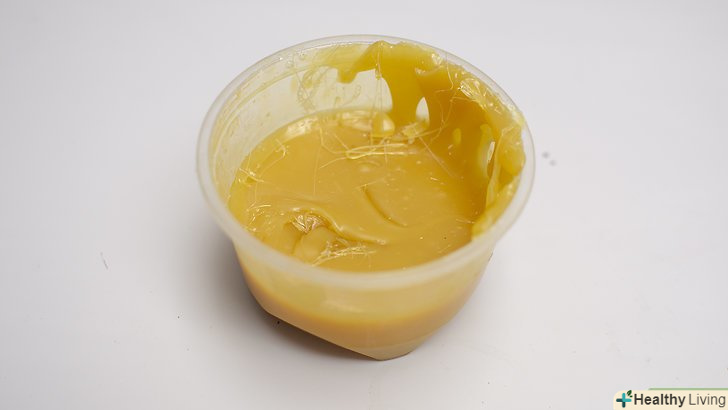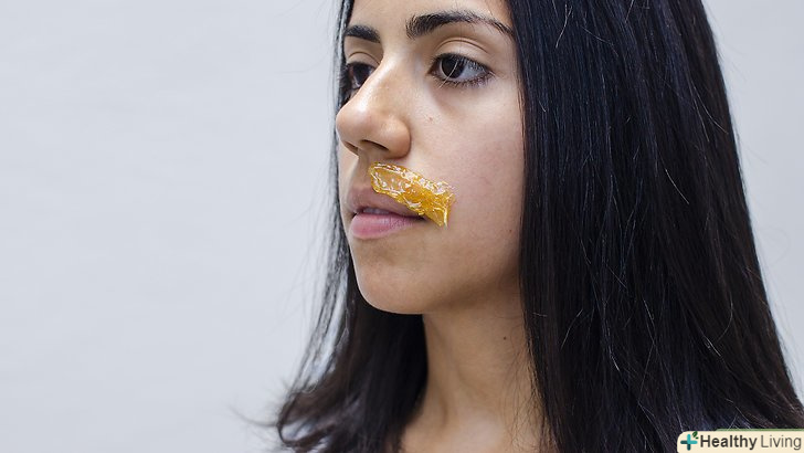 При необхідності розігрійте віск в мікрохвильовій печі. більшість воскових засобів вимагають розігріву, на відміну від деяких видів воскових смужок. Помістіть ємність з воском в мікрохвильову піч і розігрійте її протягом рекомендованого часу. Неухильно дотримуйтесь інструкцій по застосуванню, щоб уникнути перегріву і опіку. [14]- Нанесіть віск на відповідну ділянку над верхньою губою. якщо ви придбали пастоподібний віск, за допомогою прикладеної до набору лопатки акуратно нанесіть його на шкіру над верхньою губою. Наносите віск у напрямку росту волосся. Віск повинен покрити волосся товстим шаром. При цьому будьте обережні і стежте, щоб віск не потрапив на ніжну шкіру губ і в ніс. [15]