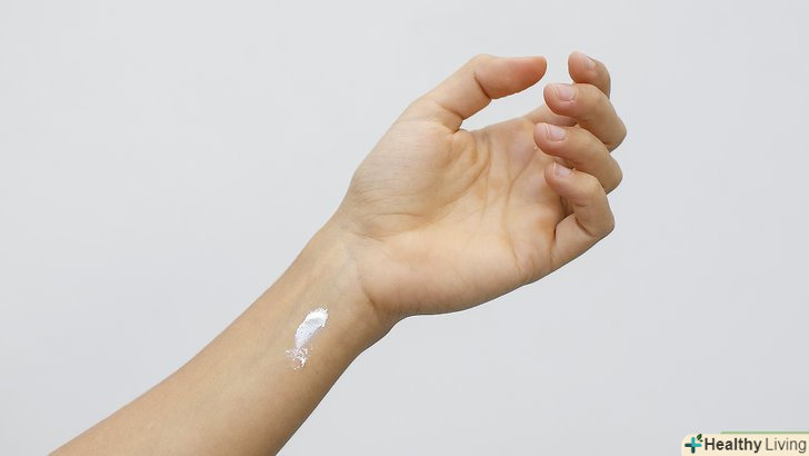 - Перевірте крем на невеликій ділянці шкіри. нанесіть крапельку крему на чутливий, але при цьому безпечний ділянку шкіри (наприклад, на внутрішню сторону зап'ястя), щоб перевірити реакцію. Залиште крем на рекомендований час, після чого повністю змийте його. Зачекайте 10-15 хвилин, щоб переконатися в тому, що даний крем не викликає свербіж або почервоніння шкіри.