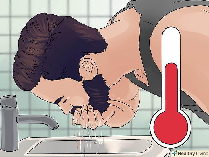 Вмивайтеся раз на день. якщо вмиватися частіше, це може привести до сухості шкіри. Подумайте, коли Вам зручніше вмиватися — вранці або ввечері, головне не робити цього два рази в день. Всякий раз, коли вирішите освіжитися між умиваннями, обполіскуйте обличчя водою прохолодною або кімнатної температури без миючого засобу.- Не використовуйте гарячу воду. Гаряча вода сушить шкіру, так що використовуйте замість неї прохолодну воду або воду кімнатної температури.