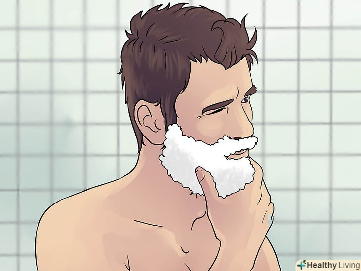 Наносите крем для гоління на вологе обличчя. так шкіра обличчя буде залишатися зволоженою, що забезпечить гладке ковзання лез по його поверхні. Не голіться на суху шкіру або без крему, якщо тільки ви не використовуєте електричну бритву. [6]- Спробуйте знайти крем для гоління або гель без великої кількості хімікатів, які можуть висушити або викликати роздратування шкіри.