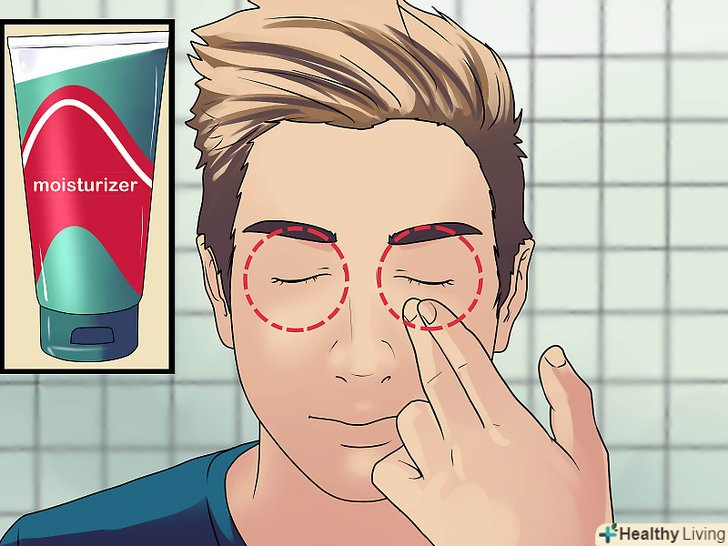 Зволожуйте шкіру навколо очей. якщо ви не зволожуєте Інші частини вашого обличчя, хоча б наносите крем на область навколо очей. Шкіра в цій області з віком провисає, а використання крему допоможе їй залишатися свіжою. [4] зволожити цю область особливо важливо для більш дорослих чоловіків, але ніколи не рано зробити це частиною вашого режиму.- Якщо користуватися звичайним зволожуючим засобом, а не тим, що призначене для області навколо очей, це може привести до закупорки фолікулів і, як наслідок, ячменю.