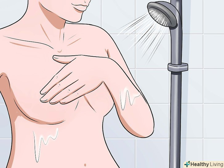 Доглядайте за шкірою грудей, щоб вона залишалася гладкою, ніжною і молодою. навколо грудей і на ній може збиратися піт і бруд. Робіть наступне: [9]- Змивайте бруд і піт під душем або у випадках, коли у вас немає часу, теплими вологими рушниками. Це не тільки поліпшить ваше самопочуття, але і позбавить від бруду, мертвих частинок шкіри і сміття, що в свою чергу дозволить вам уникнути утворення прищів на грудях.