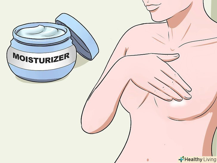 Зволожуйте шкіру щодня, наносячи крем. використовуйте легкий крем, який не забивав би ваші пори і давав шкірі дихати.- Завжди наносите крем або зволожуюче молочко після душу. Якщо шкіра буде м'якою і гладкою, вона довше залишатиметься здоровою і буде швидко гоїтися.