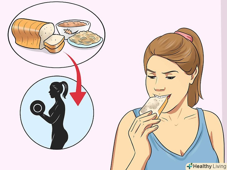 Щоб вам вистачало енергії на регулярні фізичні вправи, їжте складні вуглеводи. складні вуглеводи перетравлюються довше і дають більше енергії, на відміну від простих цукрів. [11]- Хорошим джерелом складних вуглеводів вважаються боби, груші, квасоля, фісташки, картопля, кукурудза, зелений горошок, пастернак і цільнозерновий хліб.