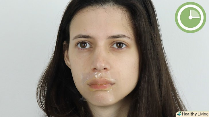 - Нанесіть маску на губи і залиште на п'ять хвилин. пальцями рівномірно розподіліть маску по шкірі. Маска може стікати по шкірі губ, тому ляжте або сядьте і закиньте голову назад.