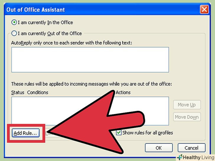 Додайте правила. в Outlook можна використовувати спеціальні правила, наприклад, перенаправляти листи від одних відправників іншим одержувачам і т.д. щоб задати правило, натисніть на кнопку "Add Rule". Наприклад, ви можете задати таке правило, за яким листи від серйозного клієнта будуть перенаправлятися відразу вашому помічнику.