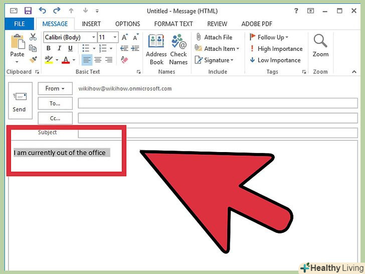 Створіть свій шаблон. без облікового запису Exchange опція Automatic Reply недоступна. Тим не менш, налаштувати автоматичні відповіді все ще реально - для цього вам знадобиться шаблон і правила. Почніть зі створення нового електронного листа, воно і буде шаблоном.- Виберіть тему, яка підходить ситуації, наприклад, " у відпустці до lt;датаgt;". Можна написати в темі фразу" це автоматична відповідь", щоб не заплутувати співрозмовника.
