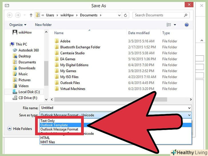 Збережіть шаблон.як тільки закінчите роботу над листом, збережіть його: клікніть Save As і виберіть Outlook Template в випадаючому меню Save as type. Це збереже лист як шаблон Outlook.