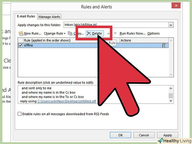 Вимкніть правило.повернувшись назад в офіс, ви можете відключити правила, знову відкривши меню "Rules and Alerts", вибравши там правило" Out of Office " зі списку активних і видаливши його.