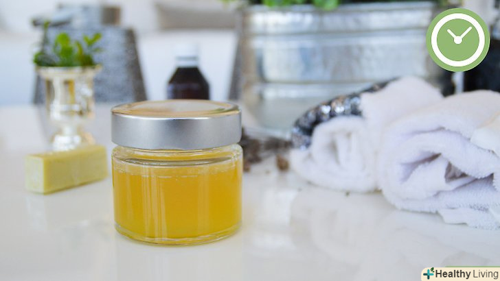Додайте в ємність трохи меду. Мед не тільки має приємний запах, але і змочує шкіру. Досить 1 столової ложки меду. Він повинен бути прозорим і не дуже густим.