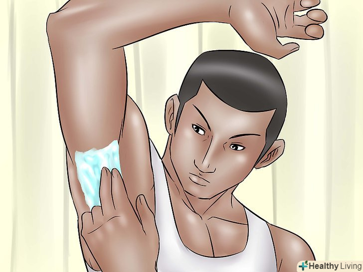 Нанесіть зволожуючий крем або гель для гоління на ваші пахви і залиште на шкірі не менше ніж на 4 хвилини.