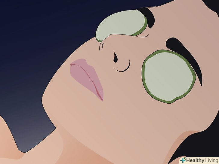 Освітліть темні кола. якщо ви прокидаєтеся з темними мішками, покладіть на очі скибочки огірка на п'ять-десять хвилин. Огірки дають освітлюючий ефект на шкірі, що допоможе вам освіжити область навколо очей. [7]
