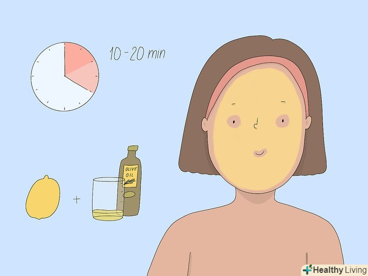 Використовуйте лимон і оливкову олію, щоб відлущити і зволожити шкіру одночасно. вбийте двох зайців, змішавши в невеликій мисці сік з одного лимона з ¼ склянки (60 мл) оливкової олії. Ретельно перемішайте інгредієнти до однорідності, перш ніж наносити суміш на обличчя. Наносите маску кінчиками пальців по частинах. Втирайте суміш невеликими, круговими рухами, щоб зробити процес відлущування ефективніше. [4]- Оливкова олія можна замінити мигдальним.