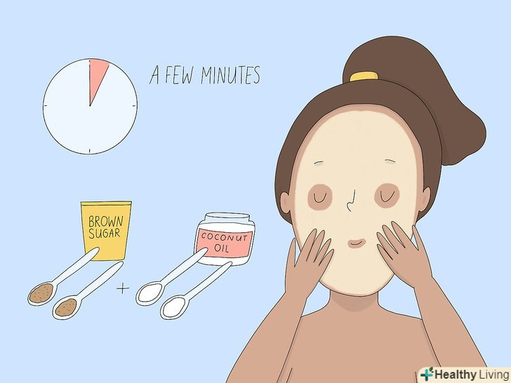 Відлущуйте омертвілу шкіру сумішшю коричневого цукру і кокосового масла. змішайте 2 столові ложки (25 гр) коричневого цукру з 2 столовими ложками (30 мл) кокосового масла і ретельно перемішайте. Опустіть кінчики пальців в суміш і нанесіть маску на шкіру обличчя. Наносите її круговими рухами, щоб відлущити всі омертвілі клітини з шкіри обличчя. Для досягнення максимального ефекту залиште маску на кілька хвилин, а потім змийте її теплою водою. [5]- Ця маска особливо корисна людям з сухою шкірою.