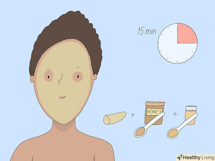 Додайте апельсиновий сік до розім'ятого банану, щоб домогтися сяйва шкіри. очистіть банан від шкірки і розріжте його навпіл. Помістіть одну половину банана в невелику миску і розімніть її виделкою, а потім додайте 1 столову ложку (15 мл) меду і апельсинового соку. Нанесіть суміш безпосередньо на обличчя пальцями, покриваючи всі ділянки шкіри. Залиште маску на обличчі приблизно на 15 хвилин, а потім змийте її теплою проточною водою. [6]- Не хвилюйтеся, якщо маска здається грудкуватою, так як це неминуче при роботі з бананами.