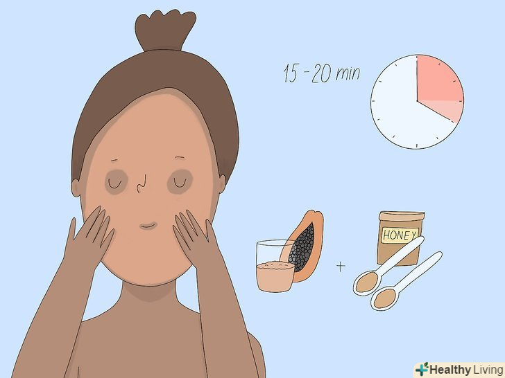 Використовуйте папайю і мед, щоб вирівняти тон шкіри. для цього змішайте в невеликій мисці 2 столові ложки (30 мл) меду і ½ склянки (120 гр) розім'ятої папайї. Перемішуйте, поки суміш не стане досить однорідною, щоб її можна було легко нанести на обличчя. Зачерпніть трохи суміші кінчиками пальців і розітріть її по всій поверхні обличчя. Після того як закінчите наносити маску, залиште її на 15-20 хвилин, а потім змийте прохолодною водою. [7]- Обов'язково нанесіть суміш на темні плями на обличчі.