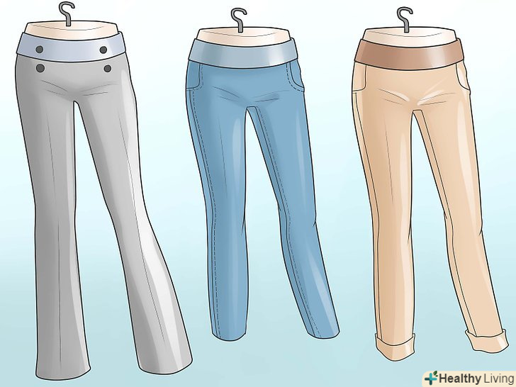 Підбирайте нижню частину одягу, яка підходить вашій фігурі і відповідає випадку. багато чого можна було б написати в цьому розділі. Підкреслити красу ніг можна за допомогою щільно облягаючих штанів (схожих на штани для йоги), які роблять їх стрункішими. У теплий сонячний день надіньте модні шорти.- Намагайтеся не носити безформну мішкуватий одяг. Подібні джинси або штани не поліпшать зовнішній вигляд ніг. [17]