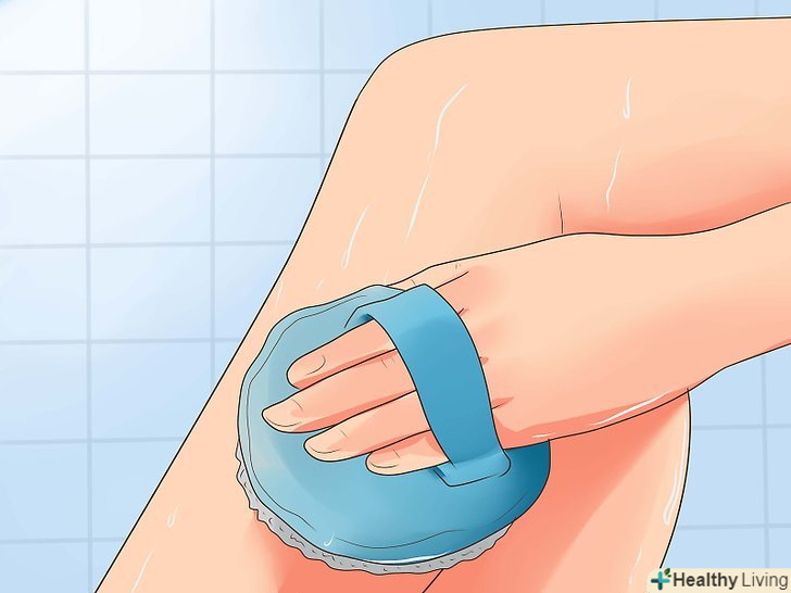 Відлущуйте шкіру. якщо ви не робили цього раніше, то можете виявити, що після процедури шкіра стає гладкою і блискучою. Після душу візьміть мочалку, скраб або пемзу і м'яко масажуйте ноги акуратними круговими рухами. Так ви видалите омертвілі клітини шкіри і зробите ноги візуально і тактильно краще. Бажано використовувати скраб відразу після душу, так як це спростить процес його введення в щоденний розклад. [9]