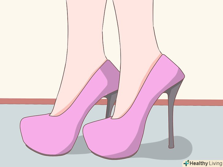 Вибирайте взуття, яке буде прикривати більшу частину ваших ніг. якщо носити взуття, яка не буде приховувати собою шкіру верхньої частини стопи і щиколотки, то з нею ваш зріст буде здаватися вище. [8] замість цього, вибирайте взуття, яка прикриває б про льшую частина ноги або хоча б частково приховує центральну частину стопи.- Наприклад, можна носити босоніжки, оксфордські туфлі, черевики, Туфлі на підборах з відкритим носом або шльопанці.