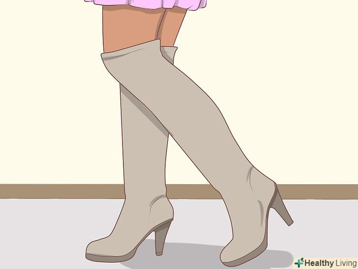 Спробуйте носити чоботи вище коліна. поєднання чобіт вище коліна і короткої спідниці, яка не дістає до колін, створює у жінок ще більш явне розмежування нижньої і верхньої частин ніг. Це не тільки робить фігуру візуально коротше, але і стильно виглядає, що може надати вам впевненості. [12]- У такій ситуації замість спідниці можна надіти шорти. Тільки пам'ятайте, що між чобітьми і йде вище одягом повинен бути видимий проміжок.