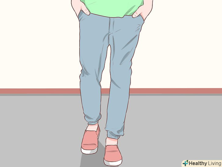 Носіть штани з вилогами. штани з вилогами або навіть просто підвернуті штани будуть візуально зменшувати ваш зріст. [2] спробуйте купити штани з нашитими по нижньому краю штанин вилогами або підверніть наявні у вас штани таким чином, щоб штанини виявилися на рівні щиколоток або трохи вище.- Щоб підвернути штани, візьміться за нижній край штанини і загорніть його вгору, оголивши тим самим виворітну сторону тканини. Залежно від того, наскільки сильно ви хочете вкоротити штани, зробіть один або два підкоміра.