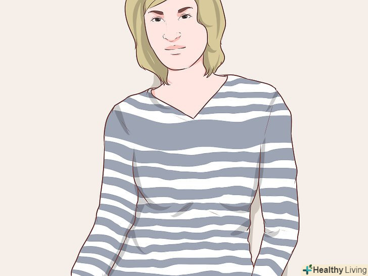 Використовуйте одяг з горизонтальними смужками і великою різноманітністю кольорів. одяг з вертикальними смугами і монохромні кольори можуть зовні зробити вас вище. Використовуйте замість вертикальних смуг і монохромних кольорів горизонтальні смужки і різноманітні кольори або візерунки. Горизонтальні смуги будуть привертати увагу до обсягів вашого тіла, а не до його зростання, що дозволить вам виглядати нижче.- Горизонтальні смуги досить поширені в різних етнічних візерунках.