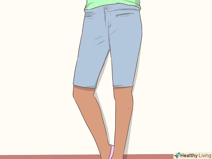 Спробуйте штани стилю Капрі, короткі спідниці і штани з кльошем від коліна. будь-який одяг, що розбиває обриси ваших ніг на частини, буде візуально робити вас нижче ростом. Цього допоможуть домогтися укорочені брюки (Капрі), спідниці з довжиною вище коліна і штани з кльошем від коліна. Завдяки такому одязі, ви відвернете увагу від довжини ваших ніг.- Чоловікам в даному випадку допоможуть подовжені шорти.