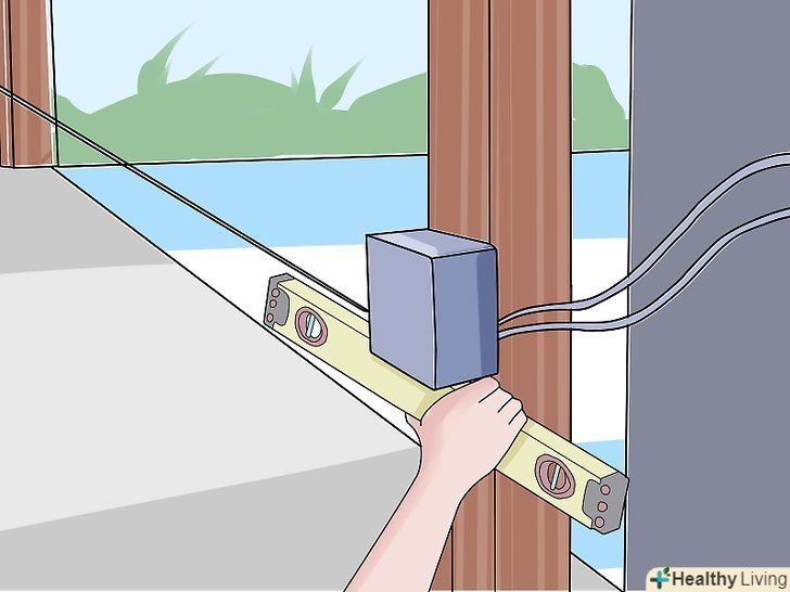 Прикладіть до нижньої частини мотузки рівень. Перевірте, щоб мотузка була вирівняна.- Якщо вона буде нерівною, відрегулюйте один або обидва сенсори, пересунувши їх вгору. Продовжуйте до тих пір, поки сенсори не будуть вирівняні.