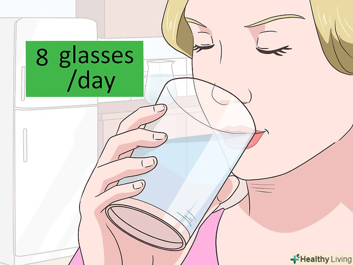 Пийте достатню кількість рідини. шкіра в основному складається з води, тому дуже важливо, щоб вона була зволожена зовні і зсередини. Якщо ви п'єте мало води, шкіра стає сухою і лущиться. Пийте щонайменше 8 склянок води на день, щоб ваша шкіра була зволоженою та здоровою. [5]- Нанесіть зволожуючий крем на шкіру після ванни, душу та коли ви миєте руки. [6] Ваша шкіра буде краще вбирати зволожуючий крем, якщо вона буде вологою.
