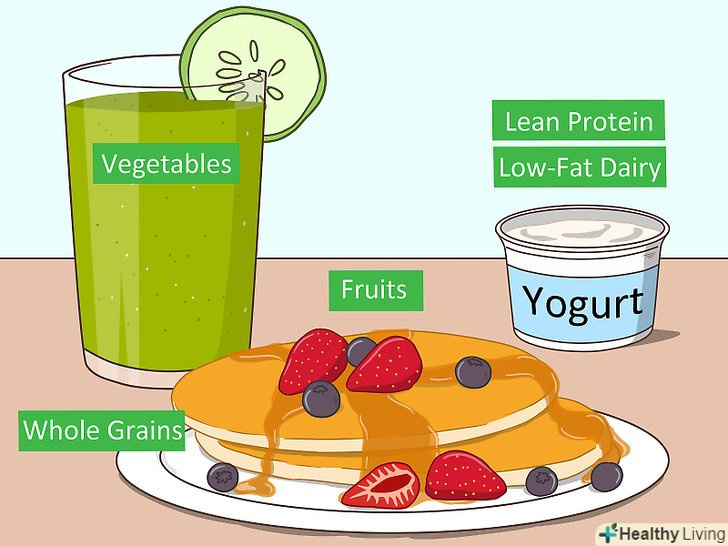 Снідайте. сніданок забезпечує організм необхідними поживними речовинами, які потрібні для початку гарного дня. Ваш сніданок повинен складатися з цільнозернових продуктів, пісного білка, знежирених молочних продуктів, а також фруктів і овочів. [12] добре виглядати означає мати достатню кількість енергії, а також отримувати необхідні вітаміни і мінерали, яких потребує організм.- Ви можете включати в свій сніданок вівсяні пластівці з мигдалем або сухофруктами, фруктові та овочеві пюре, млинці з декількох видів борошна з фруктами і йогуртом, цільнозернові вафлі / хліб з арахісовим маслом або яєчний омлет з овочами. [13]