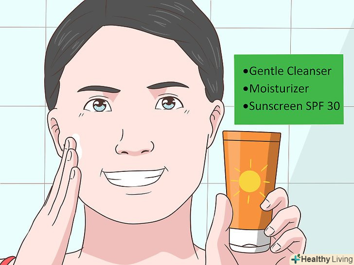 Доглядайте за шкірою. здорова, чиста шкіра має гарний блиск, завдяки якому ви виглядаєте привабливо. Вмийтеся, використовуючи ніжний миючий засіб і нанесіть зволожуючий крем. [14] також не забувайте використовувати сонцезахисний крем перед виходом на вулицю. Рекомендується користуватися кремами з SPF 30 і вище. [15]- Використовуйте легкий зволожуючий крем. Він повинен відрізнятися від того, яким Ви користуєтеся перед сном.