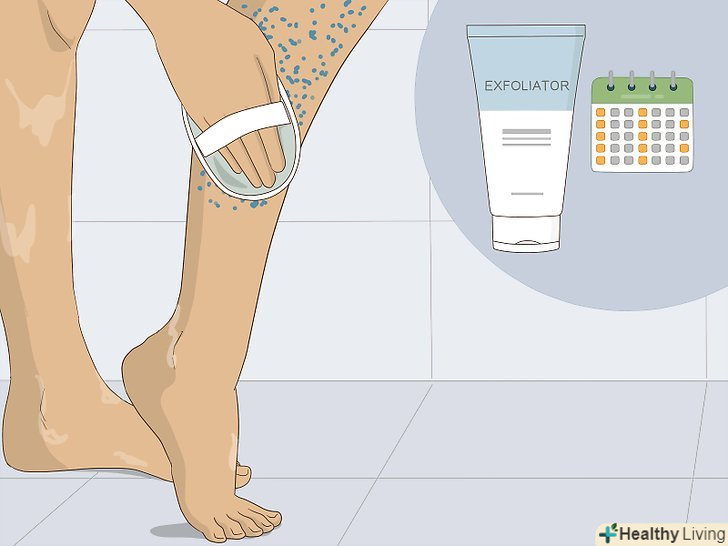 Робіть відлущування шкіри ніг. відлущування — це ключ до гладких і блискучих ніг, оскільки воно видаляє всі омертвілі клітини шкіри. Омертвілі клітини епідермісу змушують шкіру виглядати тьмяною і сухою. В процесі відлущування видаляється верхній шар епідермісу і відкривається новий шар з блискучою, зволоженою шкірою. Використовуйте скраб для тіла, щоб робити відлущування на ногах 2-3 рази на тиждень.- Скраби для тіла можна придбати в більшості супермаркетів і магазинах косметики або зробити власне отшелушивающее засіб в домашніх умовах.
